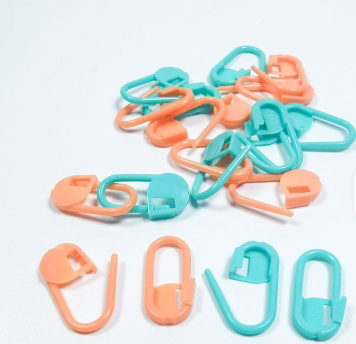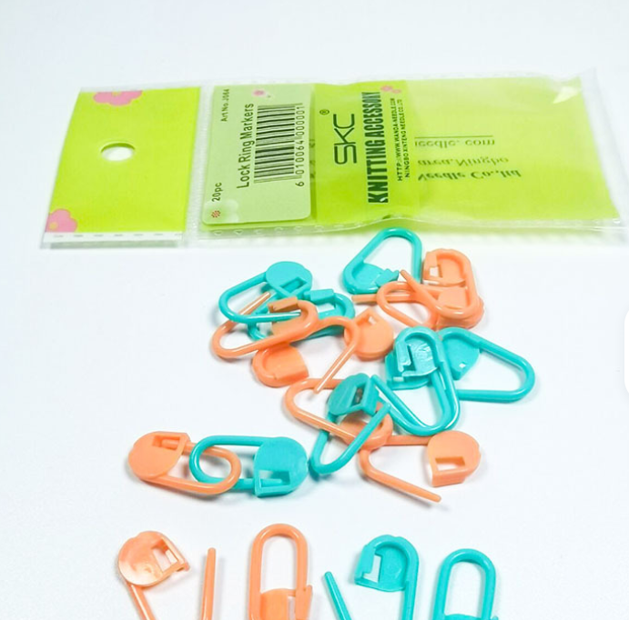 Este set incluye 20 marcadores de punto tipo alfiler con cierre de seguridad, ideales para crochet y dos agujas. Permiten marcar vueltas, aumentos, disminuciones o errores sin dañar el tejido.