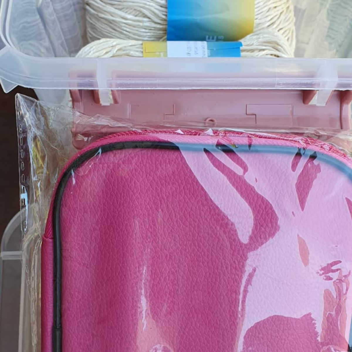 Canasto rígido reutilizable, perfecto para guardar lanas y herramientas.
